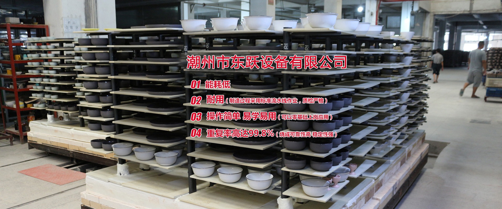 潮州市東躍設(shè)備有限公司,創(chuàng)立于公元2011年5月14日,經(jīng)過進(jìn)十年的努力,已發(fā)展成一家擁有集研發(fā)、設(shè)計(jì)、加工制造、安裝、調(diào)試與售后一體化的窯爐公司。設(shè)計(jì)理念:1.能耗低2.耐用(制造過程采用標(biāo)準(zhǔn)流水線作業(yè),質(zhì)檢嚴(yán)格)3.操作簡(jiǎn)單 易學(xué)易用(可以零基礎(chǔ)上崗應(yīng)用)4.重復(fù)率高達(dá)99.8%(燒成可靠性高 穩(wěn)定性強(qiáng))   現(xiàn)有設(shè)計(jì)人員10名,加工制造和安裝人員約100人,調(diào)試人員10人,售后服務(wù)人員10人,公司總?cè)藬?shù)約200人。公司本著以人為本的發(fā)展策略,不斷網(wǎng)絡(luò)人才,發(fā)展自動(dòng)化窯爐技術(shù)。